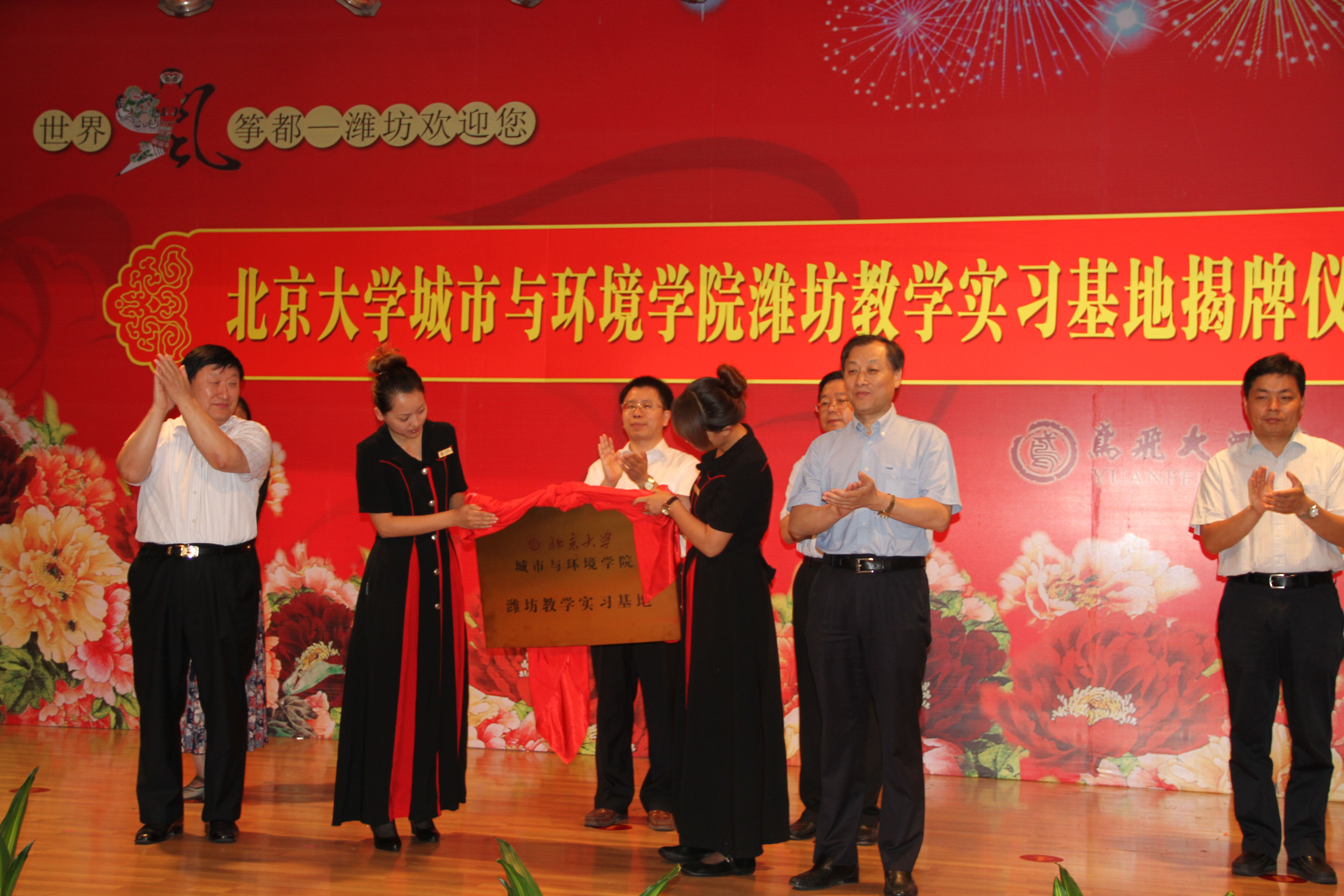 27日上午,北京bb贝博艾弗森官方网站潍坊教学实习基地揭牌仪式在鸢飞大酒店举行。潍坊市政协顾问刘维国,北京bb贝博艾弗森官方网站城市与经济地理系主任冯长春为实习基地揭牌。北京bb贝博艾弗森官方网站党委副书记贺灿飞,潍坊市副市长夏芳晨先后在揭牌仪式上讲话。仪式由潍坊市政府副秘书长于为凯主持。潍坊城市发展研究院院长王文海,潍坊市城市建设重点项目办公室副主任范晓东、王敬贤,北京bb贝博艾弗森官方网站副教授曹广忠、孟晓晨及潍坊市发改委、规划局、土地局、环保局等单位部分领导出席了揭牌仪式。