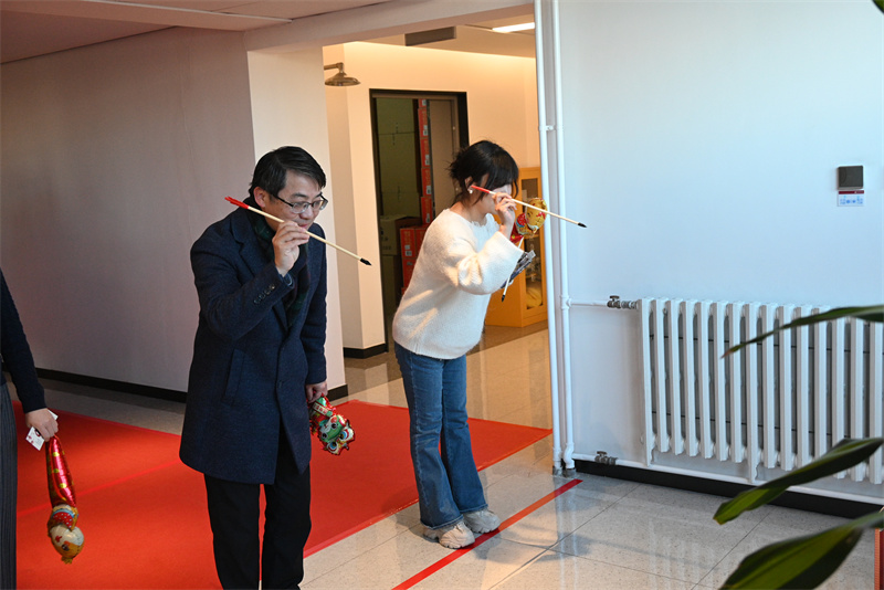 大会开始前,是“新春送福字、新年趣味赛、新禧欢乐照”环节。10日一早,学院大楼张灯结彩洋溢着节日的氛围,老师们现场挥毫泼墨,书写“福”字和春联,兴致勃勃参与投壶和飞镖挑战赛,并在新年展板前,定格下自己灿烂的笑容,留下一张张充满纪念意义的照片。活动现场洋溢着欢声笑语,气氛温馨而热烈。
