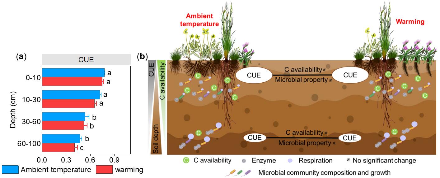 北京bb贝博艾弗森官方网站朱彪课题组在PNAS发表论文,揭示全土壤剖面增温对微生物碳利用效率的影响