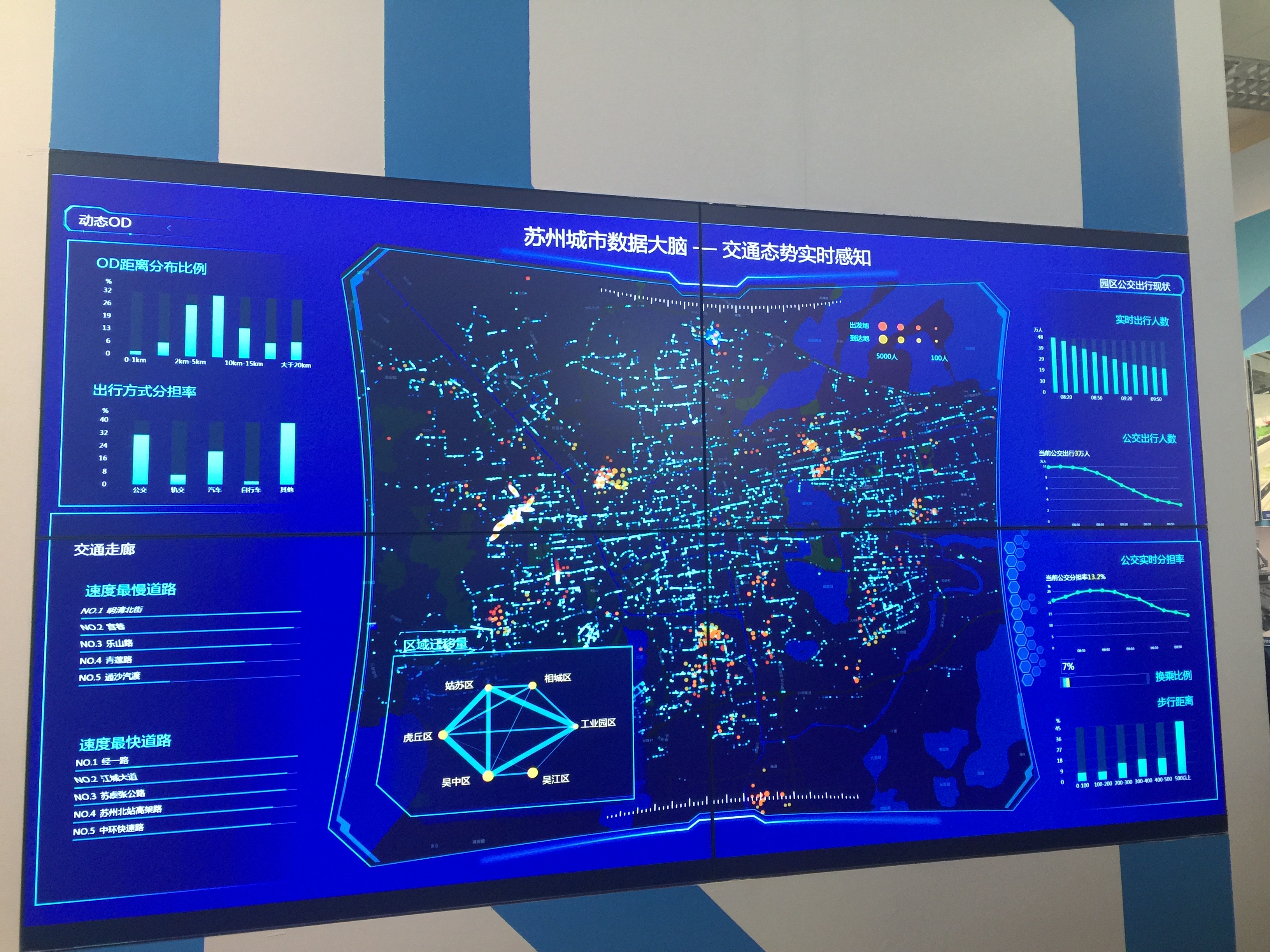 我们看到智慧城市的发展蓝图,展区不仅展示了交通态势实时感知的数据处理系统,还展示了从城市实时情况等基础数据收集到在智慧中心处理解决问题的一系列过程,形成市民实时上报、城市管理者精确管理、市民与城市管理者高效协同解决城市问题的智慧化城市。