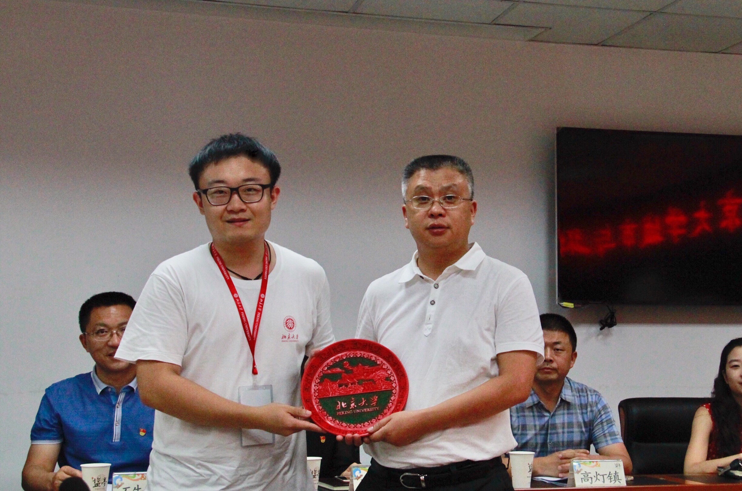 图6 廖奕楠代表实践团成员向盐亭县委赠送礼物