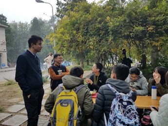 10月26日,我们在户外就餐区举行了第三次午餐会。本次午餐会邀请到了朱晟君老师和刘涛老师。据童昕老师介绍,两位老师当年都是名列前茅的学生。不仅有扎实的专业功底,在成绩上遥遥领先,而且在学习方法上有自己独到的见解。因此,本次午餐会的主题就定为人文方向的学习和出国深造。