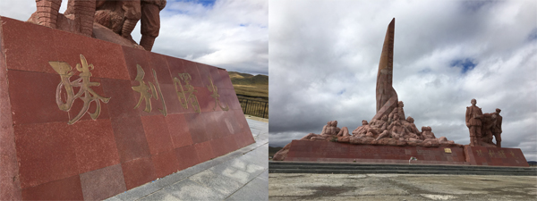 阿坝州松潘县川主寺镇的“红军长征纪念碑碑园”,坐落在松潘至兰州和黄龙公路的交叉口,元宝山顶。邓小平题写了“红军长征纪念碑碑园”的园名,凸显了长征路上红军战士前赴后继,英勇向前,历尽艰险,流血牺牲的长征精神。