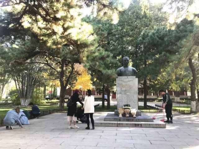 20191031日上午,支部成员前往静园草坪祭扫革命烈士纪念碑和李大钊先生铜像。北京大学革命烈士纪念碑呈字型,坐落于燕园的静园草坪北侧,由几块红色大理石组成。纪念碑于199354日揭幕,纪念从1919五四运动到新民主主义革命取得全国胜利期间,为中国的民族解放和人民革命事业英勇献身的北京大学83位师生。其旁矗立的李大钊先生铜像由北大七七、七八两届毕业生怀念敬立,以纪念这位我国共产主义的先驱、伟大的马克思主义者。