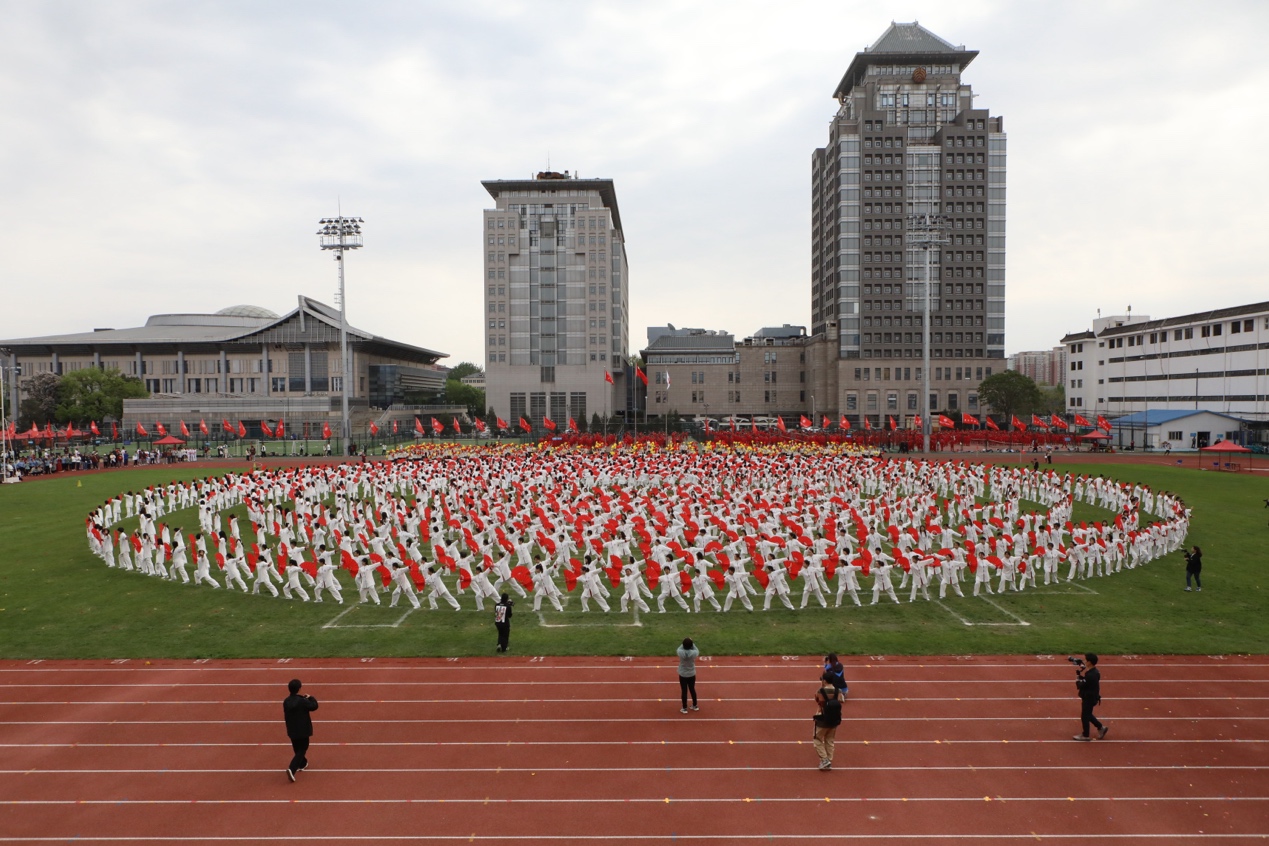 团体操中整齐的着装,统一的步伐,是运动场上一道靓丽的风景线,展示出城环人的团结与进取。