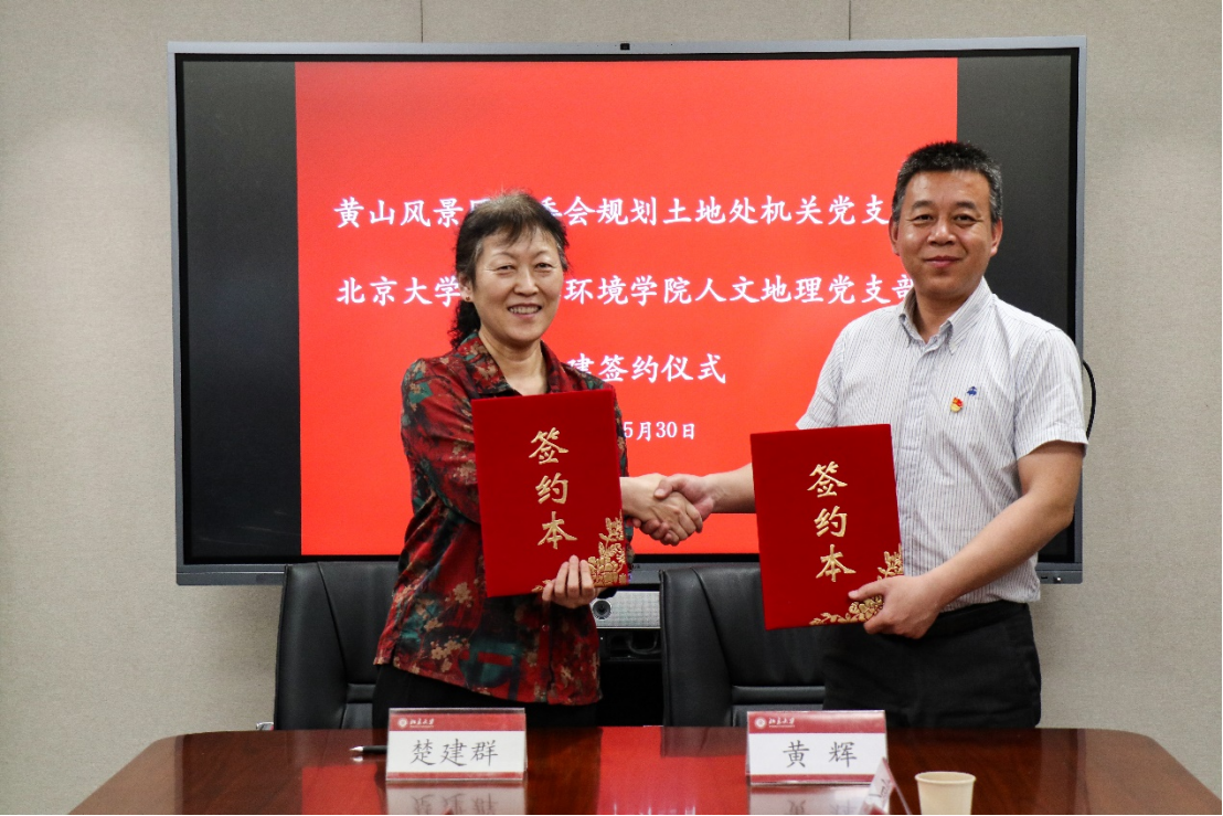 彭建指出,此次支部共建是城市与环境学院深入开展学习贯彻习近平新时代中国特色社会主义思想主题教育、创新探索高校党建工作新路径的重要举措,希望双方牢牢把握主题教育“学思想、强党性、重实践、建新功”的总要求,通过支部共建,把习近平新时代中国特色社会主义思想转化为坚定理想、锤炼党性、指导实践、推动工作的强大力量。充分发挥黄山世界遗产品牌和北京大学人文地理学专业优势,共同搭建多层次、多方位的党建业务合作平台,积累可复制可推广的党建科研深度融合经验。