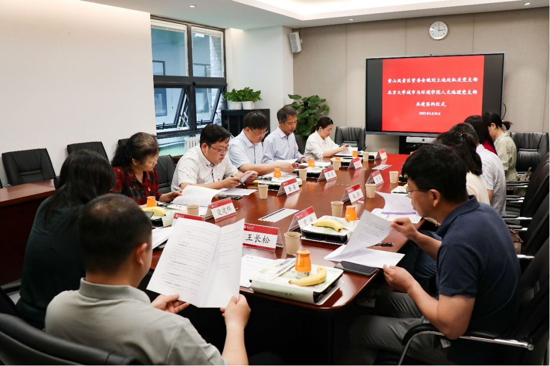 发布时间:2023-06-025月30日中午,黄山风景区管委会规划土地处机关党支部、北京bb贝博艾弗森官方网站人文地理党支部共建签约仪式及座谈会在城市与环境学院大楼264会议室举行。黄山管委会规划土地处副处长、党支部书记黄辉,黄山世界遗产管理办公室(监测中心)主任方媛,黄山规划土地处党支部组织委员朱晔、第一党小组组长孙翠萍,北京bb贝博艾弗森官方网站党委书记彭建、党委副书记金鑫、副院长刘萍,城市与环境学院人文地理党支部书记楚建群、支部委员戴林琳、王长松,副教授宋峰参加活动。活动由北京bb贝博艾弗森官方网站党委副书记、北京大学世界遗产研究中心主任陈耀华主持。